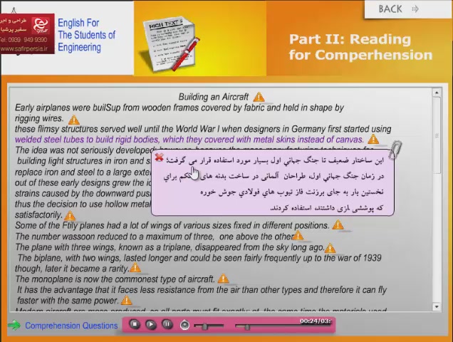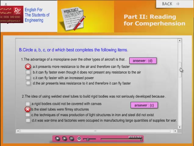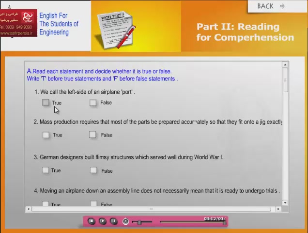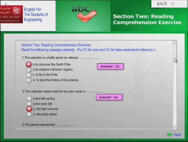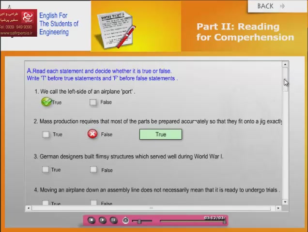 -بخش سوالات تستی همراه با تصحیح آنلاین